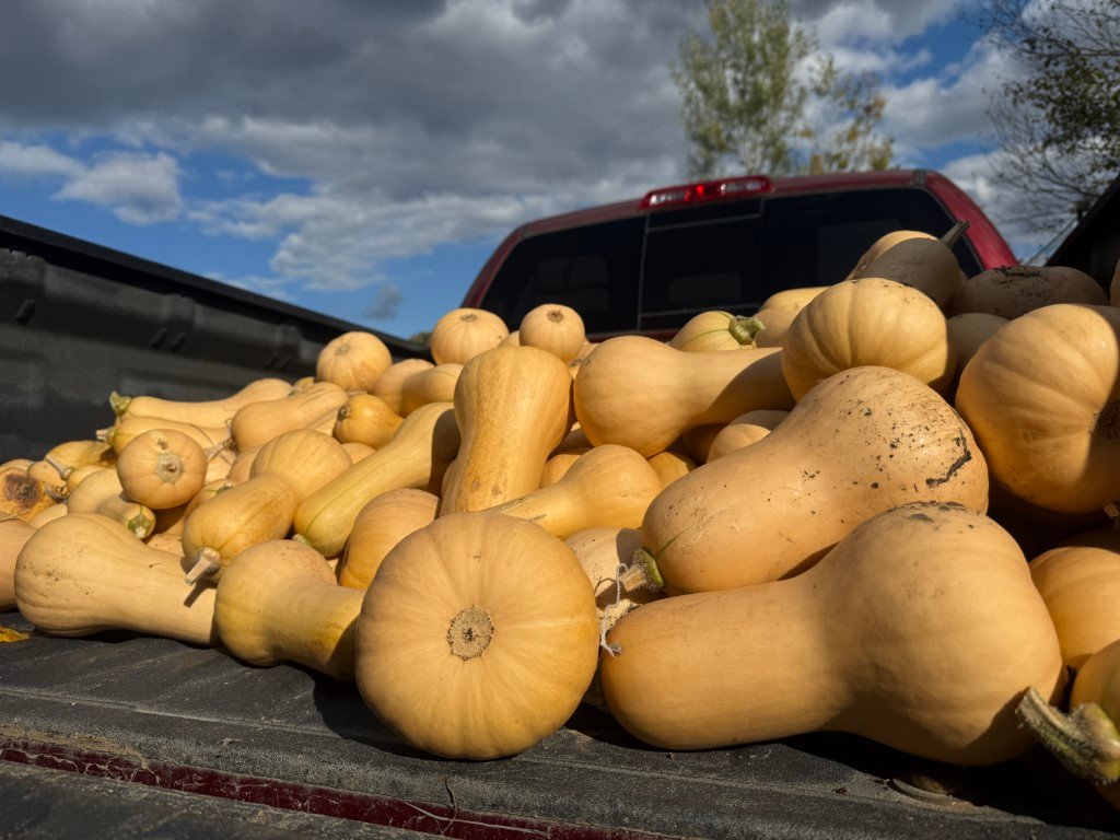 Yes you can grow butternut squash this far north! And you don’t have to compromise, because fruits are nearly the same size as the classic Waltham butternut and taste even better. Deeper orange in color with a richer, nuttier, more complex flavor. While they are compact plants, ‘semi-bush’ might be more accurate, because they can throw out short runners. Still a great feature for people with limited space who want to grow this reliable, short-season producer. Seed stock shared by John Austin.