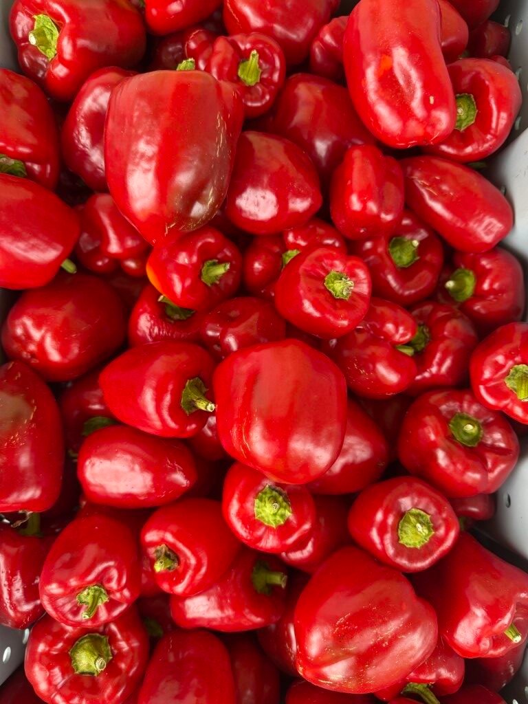 Pick-Me-Quick pepper comes from the South Dakota State Agricultural Experiment Station and was first offered from Gurney’s in South Dakota . It is highly prolific and one of the fastest red bell peppers to ripen in the garden. Plants produce many crunchy and sweet medium sized peppers which go from dark green to a bright red color. Can be eaten as a green pepper too. Concentrated fruit set happens early in the season and fruit ripens all season long. These plants are sturdy and vigorous. Seed stock is from John Austin.