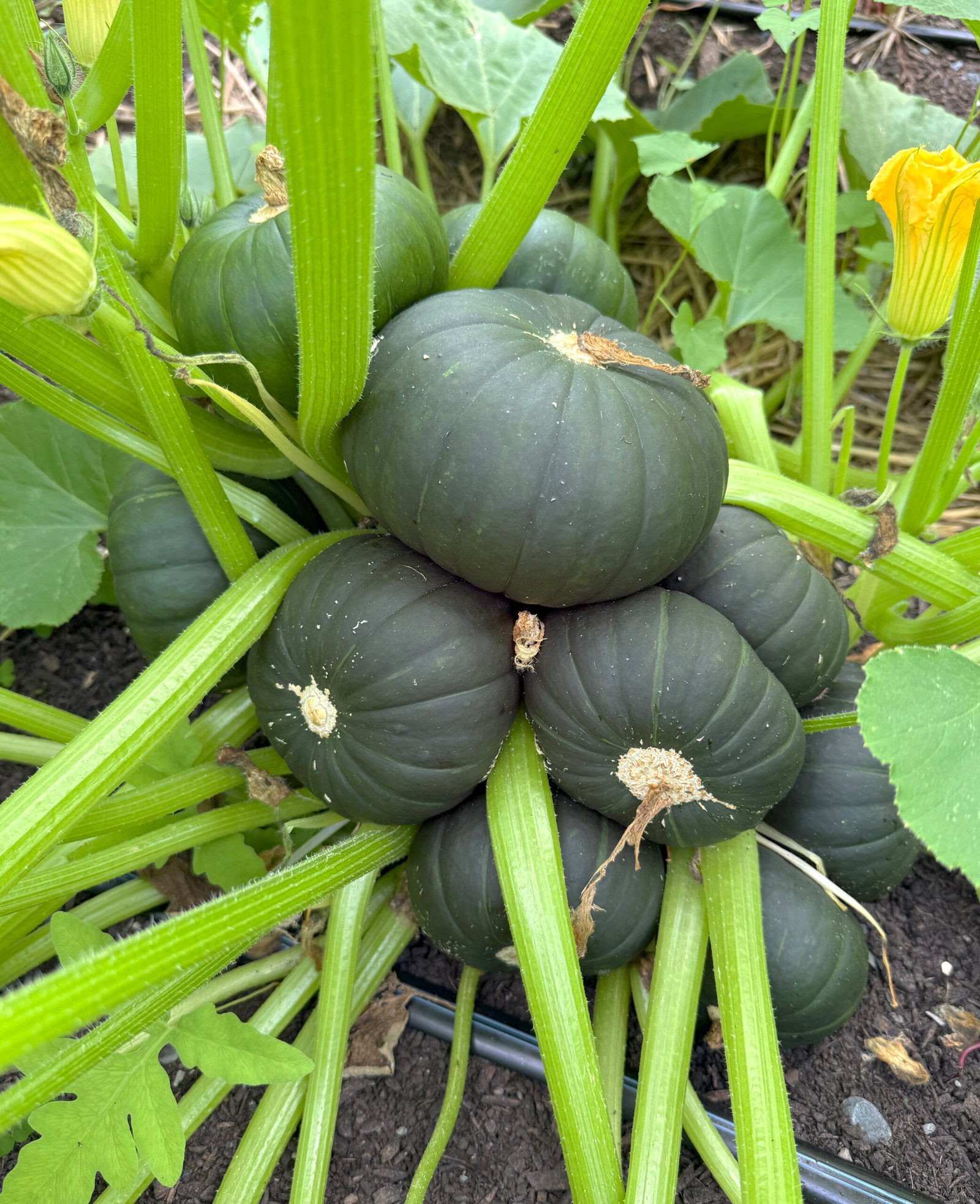 COMING SOON!!! Also known as Zapallito del tronco, this squash was brought north from South America in the 1870’s. It is said to have been grown as a staple by indigenous communities in Chile and Argentina. The name means trunk squash, or squash of the stem, which might make sense when you see how abundantly fruits develop from their thick, bushy stems (see pictures). It is eaten as both a summer and winter squash. We prefer it as a summer squash, which is saying something because we’re not huge zucchini fans. The flavor is delicate and fresh, and the texture is firm and avocado-like. For summer eating, we harvest up to 4-5ish” in size, before seeds start to develop. If you let them develop to full maturity, they size up more and store well as a winter squash. With a large seed cavity and deep orange color, we like to stuff them or put them up into soups either blended or cut into chunks. This is a fast maturing, very abundant, resilient squash with a compact habit that sends out short vines later in the season. Seed stock shared by John Austin.
